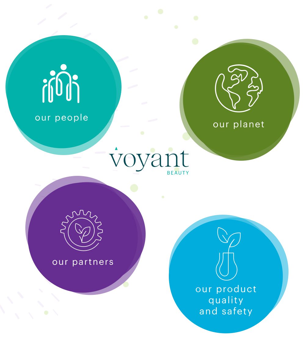 At Voyant Beauty, our approach to corporate responsibility helps us manage risks and maximize the opportunities available to us in a changing world. We are committed to understanding, monitoring, and managing our social, environmental, and economic impact to enable us to contribute to society’s broader goal of sustainable development. Our commitment to ESG, which is communicated to all employees through our core values and corporate policies, is defined as: